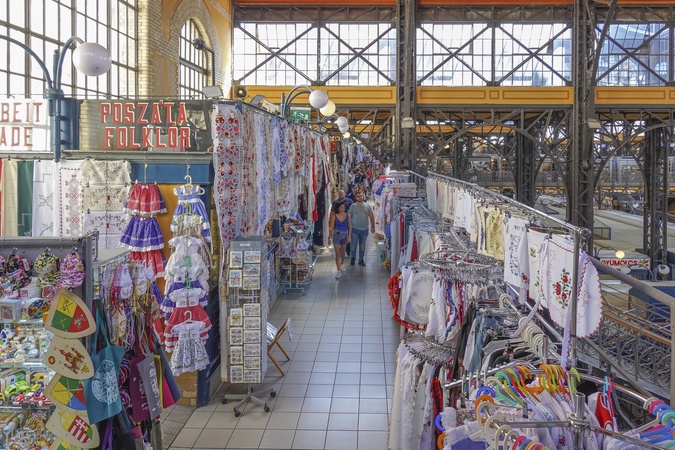 Hungary, Budapest, People shopping in the Great Market Hall or Central Market Hall. Great Market Hall is the largest and oldest indoor market in Budapest, it was built in 1896Souvenirs stallsPhoto © Fabio Mazzarella/Sintesi *** Local Caption ***, Credit:Fabio Mazzarella / Avalon