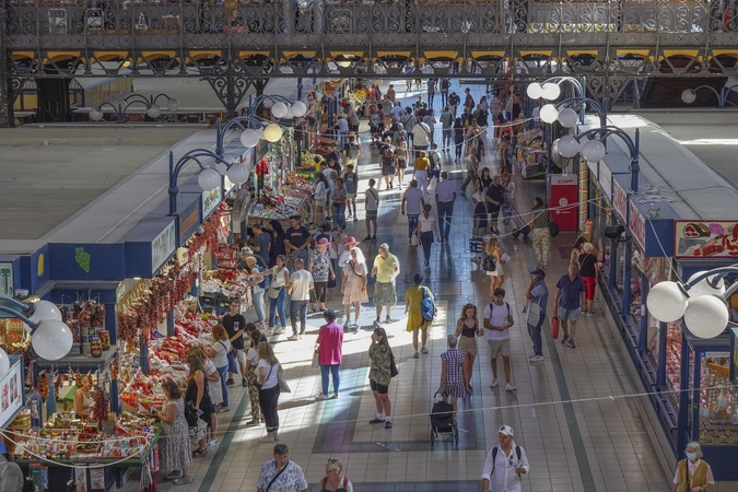 Hungary, Budapest, People shopping in the Great Market Hall or Central Market Hall. Great Market Hall is the largest and oldest indoor market in Budapest, it was built in 1896Photo © Fabio Mazzarella/Sintesi *** Local Caption ***, Credit:Fabio Mazzarella / Avalon