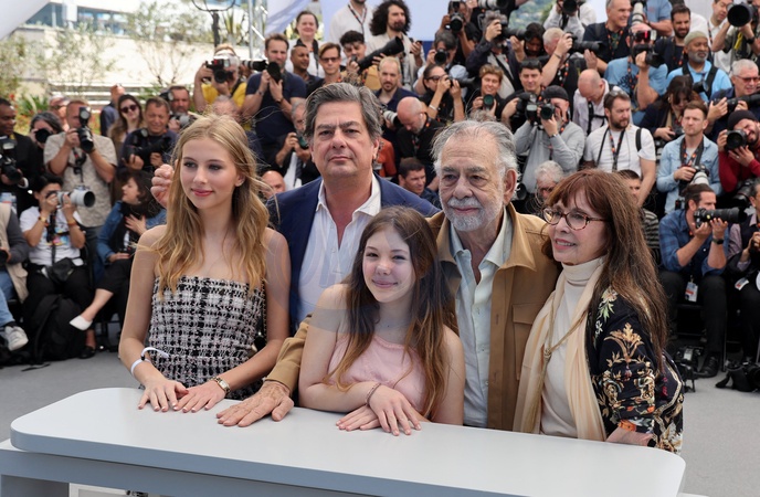 Romy Croquet, Roman Coppola, Cosima Mars, Francis Ford Coppola et Talia Shire au photocall du film "Megalopolis" lors du 77ème Festival International du Film de Cannes au Palais des Festivals à Cannes, France, le 17 mai 2024. © Jacovides-Moreau/Bestimage "Megalopolis" Photocall at the 77th annual Cannes Film Festival at Palais des Festivals on May 17, 2024 in Cannes, France.