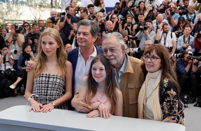 Romy Croquet, Roman Coppola, Cosima Mars, Francis Ford Coppola et Talia Shire au photocall du film "Megalopolis" lors du 77ème Festival International du Film de Cannes au Palais des Festivals à Cannes, France, le 17 mai 2024. © Jacovides-Moreau/Bestimage "Megalopolis" Photocall at the 77th annual Cannes Film Festival at Palais des Festivals on May 17, 2024 in Cannes, France.