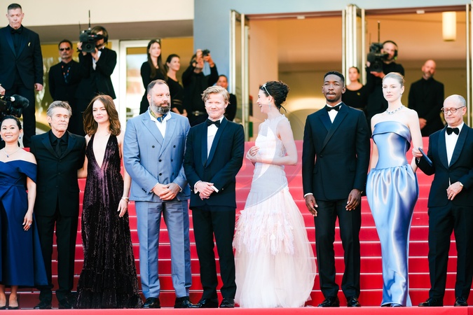 Joe Alwyn, Hong Chau, Willem Dafoe, Emma Stone, Yorgos Lanthimos, Jesse Plemons, Margaret Qualley and Hunter Schafer photographed on the Red Carpet for Kinds of Kindness during the 77th Festival de Cannes on Friday 17 May 2024 at Le Palais des festivals, Cannes. ., Credit:Julie Edwards / Avalon