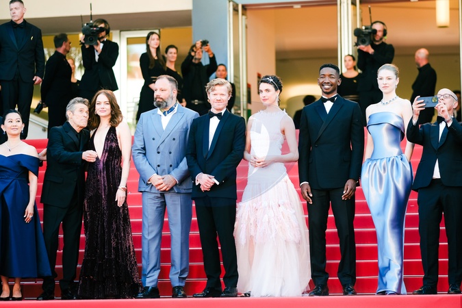 Joe Alwyn, Hong Chau, Willem Dafoe, Emma Stone, Yorgos Lanthimos, Jesse Plemons, Margaret Qualley and Hunter Schafer photographed on the Red Carpet for Kinds of Kindness during the 77th Festival de Cannes on Friday 17 May 2024 at Le Palais des festivals, Cannes. ., Credit:Julie Edwards / Avalon