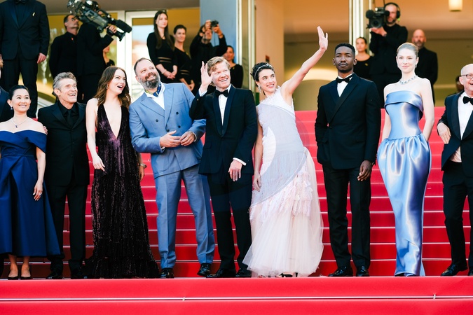 Joe Alwyn, Hong Chau, Willem Dafoe, Emma Stone, Yorgos Lanthimos, Jesse Plemons, Margaret Qualley and Hunter Schafer photographed on the Red Carpet for Kinds of Kindness during the 77th Festival de Cannes on Friday 17 May 2024 at Le Palais des festivals, Cannes. ., Credit:Julie Edwards / Avalon