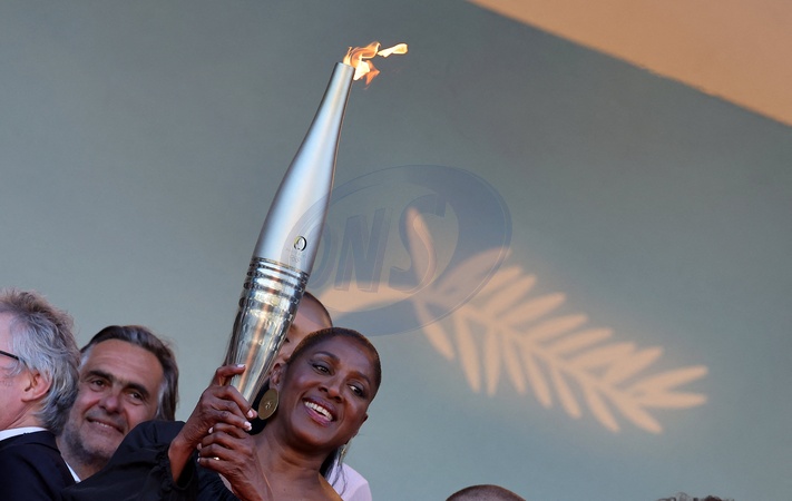 Iliana Rupert et la flamme Olympique - Montée des marches du film « Marcello Mio » lors du 77ème Festival International du Film de Cannes, au Palais des Festivals à Cannes. Le 21 mai 2024 © Jacovides-Moreau / Bestimage Red carpet of the movie « Marcello Mio » during the 77th Cannes International Film Festival at the Palais des Festivals in Cannes, France. On may 21th 2024