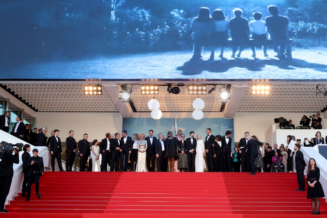 J - Montée des marches du film « Marcello Mio » lors du 77ème Festival International du Film de Cannes
