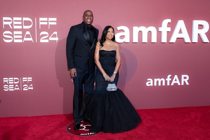 Magic Johnson et sa femme Cookie - Photocall du gala de l'amfAR 2024 à l'Hôtel du Cap-Eden-Roc, Antibes, lors du 77ème Festival International du Film de Cannes. Le 23 mai 2024. © Moreau-Jacovides / Bestimage Celebs attending amfAR Gala Cannes 2024 at Hotel du Cap-Eden-Roc, during the 77th Cannes International Film Festival. On May 23th 2024 in Cap d'Antibes, France