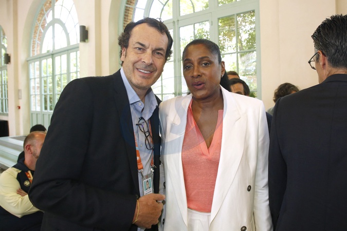 Laurent-Éric Le Lay (Directeur des sports de France TV) et Marie-José Pérec - Tirage au sort des Internationaux de France de Tennis de Roland Garros 2024 à Paris le 23 mai 2024. © Bertrand Rindoff / Bestimage Draw for the 2024 French Open Tennis Championships at Roland Garros in Paris on May 23, 2024.