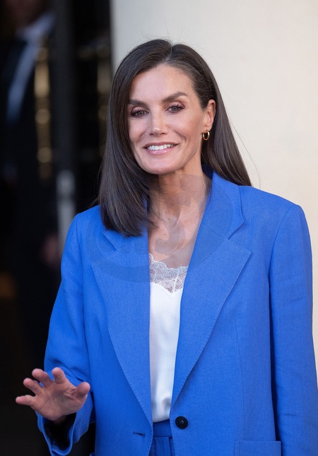 Hiszpańska królowa Letycja przybywa na premierę filmu dokumentalnego „Nauka afrykańskich kobiet – nauka kobiet” w kinie Palacio de la Prensa w Madrycie