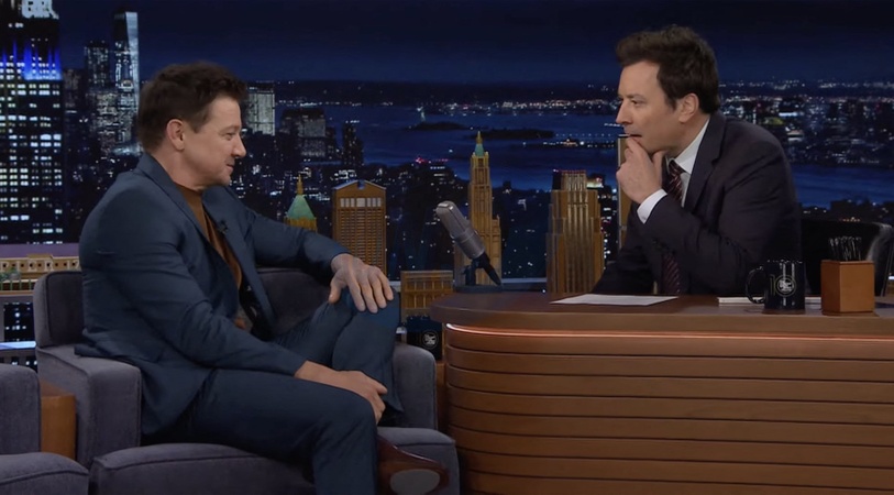 Jeremy Renner na planie „The Tonight Show Starring Jimmy Fallon” w Nowym Jorku