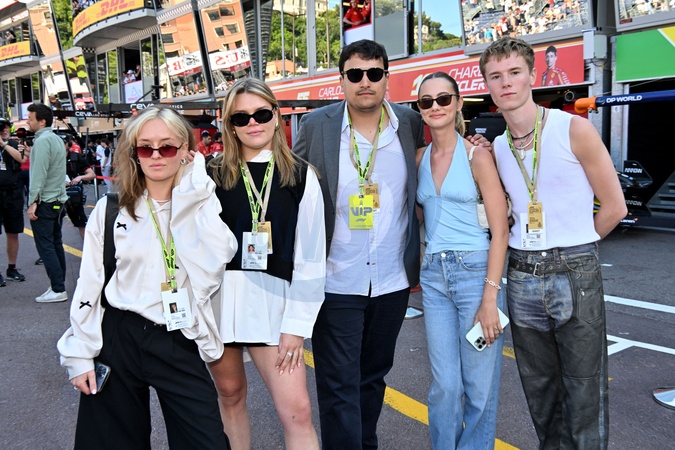 NO TABLOID : Felicia Maxime, Camille Gottlieb, Mendy Anthony, Jade Distinguinn et Edvin Ryding durant la journée des qualifications du 81ème Grand Prix de Formule 1 de Monaco, le 25 mai 2024. © Bruno Bebert/Bestimage Celebrities during qualifying for the Monaco Formula 1 (F1) Grand Prix. Monaco, May 25th, 2024.