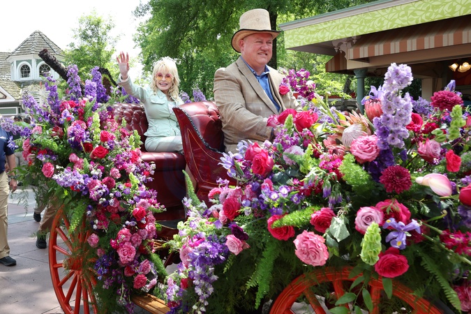 Dolly Parton riding in the Dewitt in the Dollywood Parade celebrating the opening of the Dolly Parton Experience at Dollywood on May 25, 2024, in Pigeon Forge, TN. © Curtis Hilbun/AFF-USA.COM** NO US TABLOIDS**
