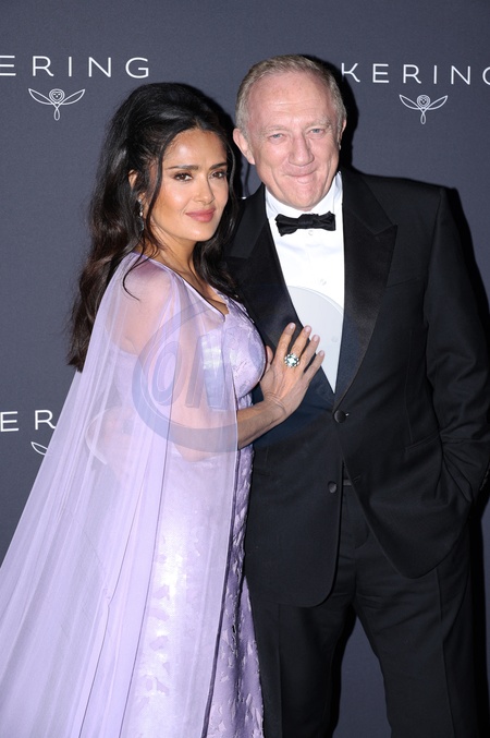 Salma Hayek et Francois-Henri Pinault - Photocall du dîner "Women in Motion" par le groupe Kering, Place de la Castre, lors du 77ème Festival International du Film de Cannes le 19 mai 2024. Photocall 2024 Kering Women In Motion Awards and Cannes Film Festival Presidential Dinner at the 77th annual Cannes Film Festival at the Place de la Castre on May 19, 2024 in Cannes, France.