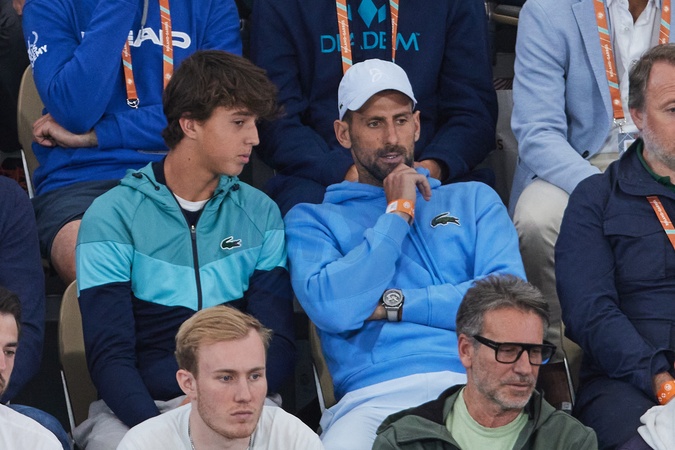 Novak Djokovic dans les tribunes pour le premier tour des Internationaux de France de tennis de Roland Garros 2024 opposant R.Nadal (Rafa) à A.Zverev, à Paris, France, le 27 mai 2024. © Jacovides-Moreau/Bestimage Celebs in the stands for the first round of the French Open tennis tournament at Roland Garros 2024 between R.Nadal (Rafa) and A.Zverev, in Paris, France, on May 27, 2024.