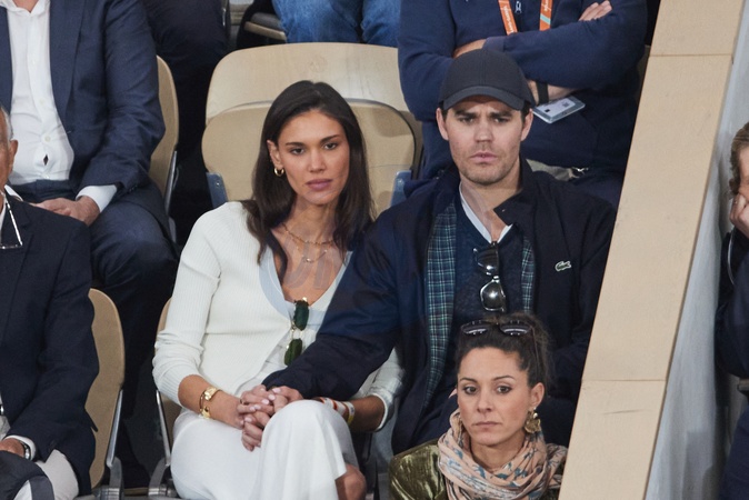 Paul Wesley et sa compagne Natalie Kuckenburg dans les tribunes pour le premier tour des Internationaux de France de tennis de Roland Garros 2024 opposant R.Nadal (Rafa) à A.Zverev, à Paris, France, le 27 mai 2024. © Jacovides-Moreau/Bestimage Celebs in the stands for the first round of the French Open tennis tournament at Roland Garros 2024 between R.Nadal (Rafa) and A.Zverev, in Paris, France, on May 27, 2024.