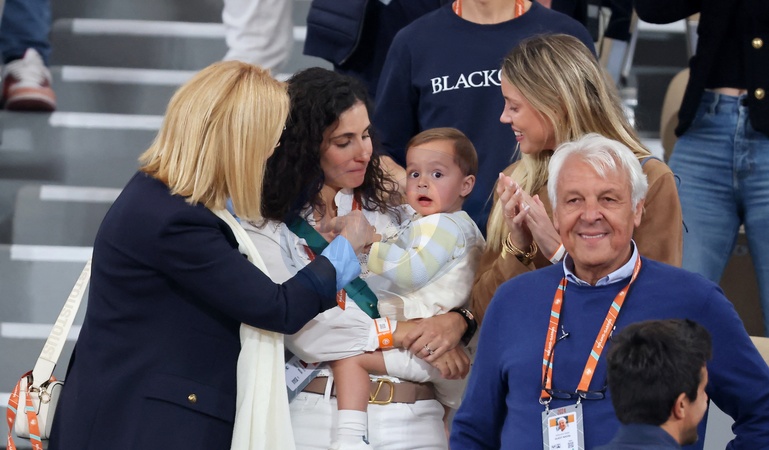 Rodzina Nadalów na trybunach turnieju tenisowego French Open podczas Roland Garros 2024 w Paryżu