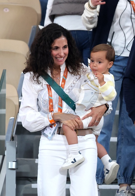 Xisca Perello (femme de Rafael Nadal) et son fils Rafael Junior - La famille de Rafael Nadal (Rafa) dans les tribunes pour le premier tour des Internationaux de France de tennis de Roland Garros 2024 opposant Rafael Nadal (Rafa) à Alexander Zverev, à Paris, France, le 27 mai 2024. © Jacovides-Moreau/Bestimage Rafael Nadal Rafa's family in the stands for the first round of the French Open tennis tournament at Roland Garros 2024 between Rafael Nadal (Rafa) and Alexander Zverev, in Paris, France, on May 27, 2024.