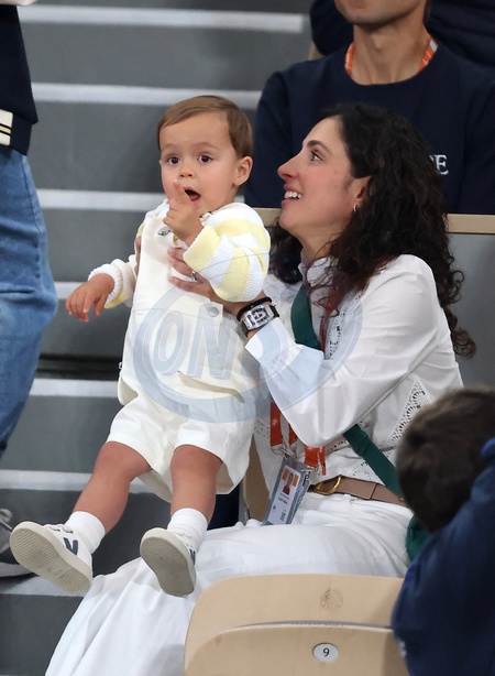 Xisca Perello (femme de Rafael Nadal) et son fils Rafael Junior - La famille de Rafael Nadal (Rafa) dans les tribunes pour le premier tour des Internationaux de France de tennis de Roland Garros 2024 opposant Rafael Nadal (Rafa) à Alexander Zverev, à Paris, France, le 27 mai 2024. © Jacovides-Moreau/Bestimage Rafael Nadal Rafa's family in the stands for the first round of the French Open tennis tournament at Roland Garros 2024 between Rafael Nadal (Rafa) and Alexander Zverev, in Paris, France, on May 27, 2024.