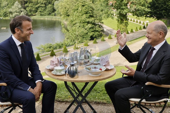 Le chancelier allemand Olaf Scholz et le président français Emmanuel Macron au palais Schloss Meseberg