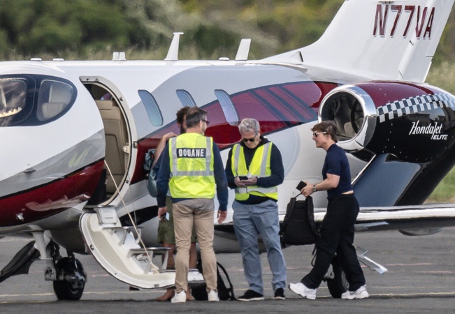 Exclusif - prix spécial - No Web - Tom Cruise est arrivé à La Rochelle le 25 Mai 2024 avec son avion personnel, le "HondaJet" N77VA qu'il pilote lui-même. Il a ensuite pris un hélicoptère afin de rejoindre le bassin d'Arcachon. Tom Cruise a passé tout le dimanche 26 Mai en l'air dans cet hélicoptère et a survollé longuement les sites de la région : Fort Boyard, le phare de Cordouan, la dune du Pyla, l'ile aux oiseaux, le Cap Ferret. Ce dimanche en hélicoptère a été organisé par l'acteur car il est en repérage de lieux pour le tournage d'une nouvelle série prévue pour 2025. Tom Cruise s'est fait redéposer en helicoptere à La Rochelle le Lundi 27 Mai afin de repartir avec son avion. © Patrick Bernard / Xavier Leoty / Bestimage Exclusive - No Web Tom Cruise arrived in La Rochelle on 25 May 2024 in his personal aircraft, the "HondaJet" N77VA, which he pilots himself. He then took a helicopter to the Arcachon basin. Tom Cruise spent the whole of Sunday 26 May in the air in this helicopter, taking in the sights of the region at length: Fort Boyard, the Cordouan lighthouse, Dune du Pyla, Bird Island and Cap Ferret. This Sunday helicopter trip was organised by the actor because he is scouting locations for the filming of a new series scheduled for 2025. Tom Cruise was dropped off again by helicopter at La Rochelle on Monday 27 May to take his plane back home.