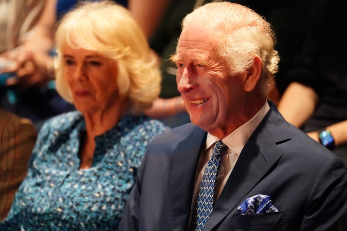 King Charles III, Patron of the Royal Academy of Dramatic Art (RADA), and Queen Camilla watching an extract of a play performed by third year acting students in the Gielgud theatre during a visit to RADA in London, to celebrate the school's 120th anniversary. Picture date: Wednesday May 29, 2024. PA Photo. See PA story ROYAL King. Photo credit should read: Jordan, Credit:Jordan Pettitt / Avalon