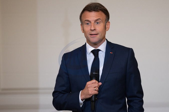 Le président de la République française, Emmanuel Macron - Le Président de la République française E.Macron et la première dame B.Macron remettent les prix "Non au Harcèlement 2024" au palais de l'Elysée à Paris, le 29 mai 2024. © Raphaël Lafargue / Pool / Bestimage French President Emmanuel Macron during the award ceremony No to bullying rewarding students involved in the fight againt cyberbullying at the French Elysee Presidential Palace, in Paris on May 29, 2024.