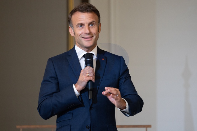 Prezydent Republiki Francuskiej Emmanuel Macron i pierwsza dama Brigitte Macron wręczają nagrody „Nie molestowaniu 2024” w Pałacu Elizejskim w Paryżu