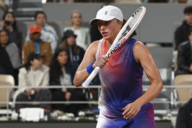 Iga Swiatek - Match N.Osaka - I.Swiatek (7-6, 1-6, 7-5) lors des Internationaux de France de Tennis de Roland Garros 2024, le 29 mai 2024. © Chryslene Caillaud / Panoramic / Bestimage Match N.Osaka - I.Swiatek (7-6, 1-6, 7-5) during the French Open Tennis at Roland Garros 2024, May 29, 2024.