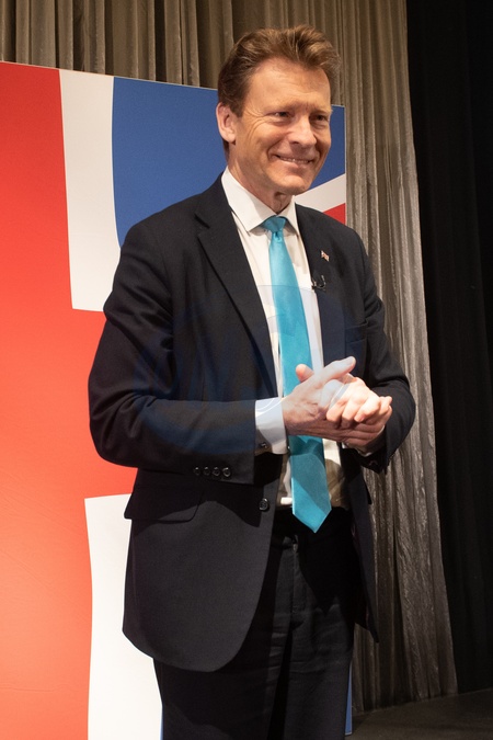 Reform UK Leader Richard Tice delivers a speech outlining Reform UK's immigration policy to tax employers for using migrants at a Glaziers Hall, London, England, UK on Thursday 30 May, 2024., Credit:Justin Ng / Avalon
