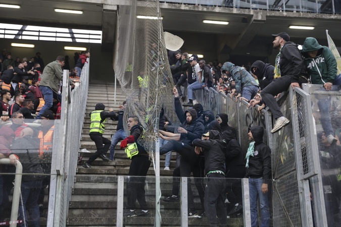 Illustrations des affrontements dans les tribunes lors du match "Metz - Saint-Etienne" au stade Saint-Symphorien