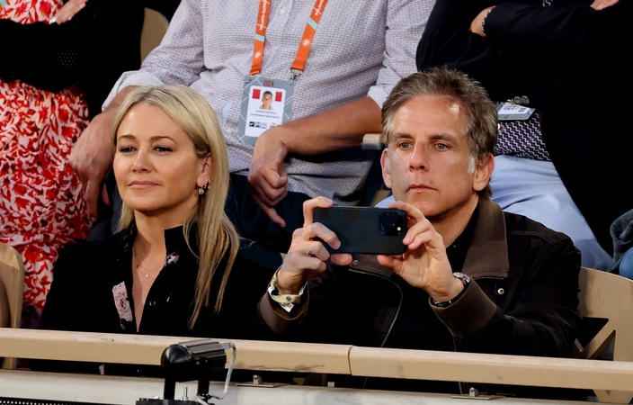Ben Stiller et sa femme Christine Taylor dans les tribunes des Internationaux de France de tennis de Roland Garros 2024 à Paris