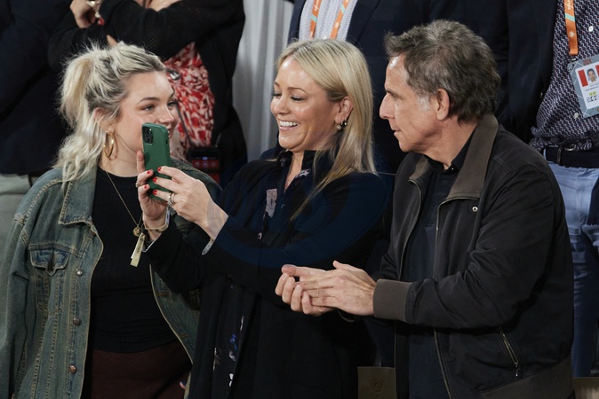 Ben Stiller et sa femme Christine Taylor dans les tribunes des Internationaux de France de tennis de Roland Garros 2024 à Paris