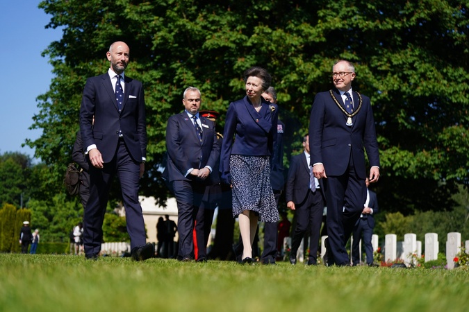 The Princess Royal arrives at the Royal British Legion Service of Commemoration to mark the 80th anniversary of D-Day, at Bayeux War Cemetery in Normandy, France. Picture date: Wednesday June 5, 2024. PA Photo. See PA story MEMORIAL DDay. Photo credit should read: Aaron, Credit:Aaron Chown / Avalon