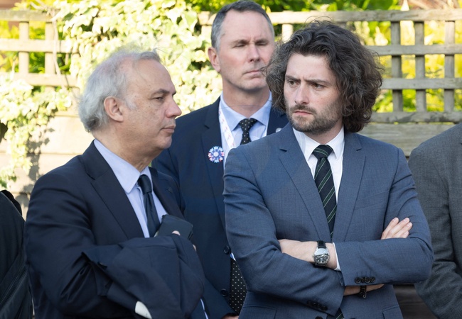 80ème anniversaire du débarquement (D-Day) : Le président Emmanuel Macron rend hommage aux massacrés de la prison de Caen avec Bernard Duval, rescapé de cet épisode tragique