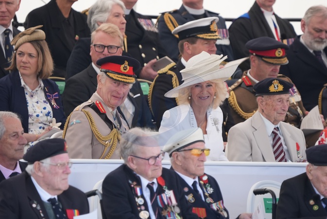 King Charles III and Queen Camilla attend the UK national commemorative event for the 80th anniversary of D-Day, held at the British Normandy Memorial in Ver-sur-Mer, Normandy, France. Picture date: Thursday June 6, 2024. It is the first time the memorial, which contains the names of the 22,442 servicemen and women under British command who fell on D-Day and during the Battle of Normandy in the summer of 1944, has been used for major anniversary commemorations, after having been opened in 2021. NO UK USE FOR 48 HOURS, Credit:Avalon.red / Avalon