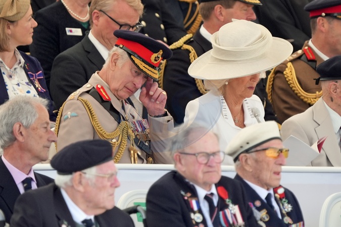 King Charles III attends the UK national commemorative event for the 80th anniversary of D-Day, held at the British Normandy Memorial in Ver-sur-Mer, Normandy, France. Picture date: Thursday June 6, 2024. It is the first time the memorial, which contains the names of the 22,442 servicemen and women under British command who fell on D-Day and during the Battle of Normandy in the summer of 1944, has been used for major anniversary commemorations, after having been opened in 2021. NO UK USE FOR 48 HOURS, Credit:Avalon.red / Avalon