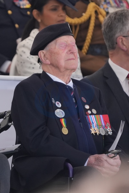 D-Day veteran and Ambassador for the British Normandy Memorial Stan Ford, 98, during the UK national commemorative event for the 80th anniversary of D-Day, held at the British Normandy Memorial in Ver-sur-Mer, Normandy, France. Picture date: Thursday June 6, 2024. It is the first time the memorial, which contains the names of the 22,442 servicemen and women under British command who fell on D-Day and during the Battle of Normandy in the summer of 1944, has been used for major anniversary commemorations, after having been opened in 2021. NO UK USE FOR 48 HOURS, Credit:Avalon.red / Avalon
