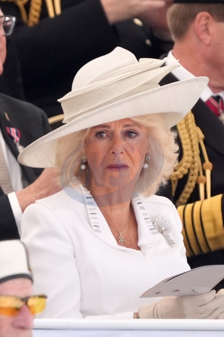 Queen Camilla gets emotional during the UK national commemorative event for the 80th anniversary of D-Day, held at the British Normandy Memorial in Ver-sur-Mer, Normandy, France. Picture date: Thursday June 6, 2024. It is the first time the memorial, which contains the names of the 22,442 servicemen and women under British command who fell on D-Day and during the Battle of Normandy in the summer of 1944, has been used for major anniversary commemorations, after having been opened in 2021. NO UK USE FOR 48 HOURS, Credit:Avalon.red / Avalon