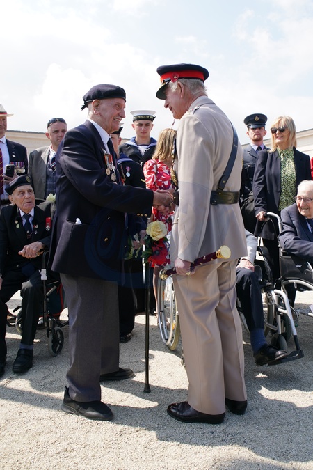 King Charles III meets D-Day veterans following the UK national commemorative event for the 80th anniversary of D-Day, held at the British Normandy Memorial in Ver-sur-Mer, Normandy, France. Picture date: Thursday June 6, 2024. It is the first time the memorial, which contains the names of the 22,442 servicemen and women under British command who fell on D-Day and during the Battle of Normandy in the summer of 1944, has been used for major anniversary commemorations, after having been opened in 2021. NO UK USE FOR 48 HOURS, Credit:Avalon.red / Avalon