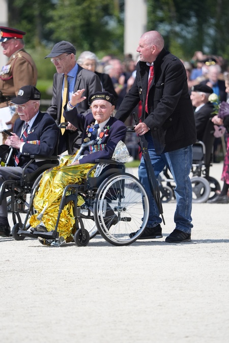 D-Day veterans leave following the UK national commemorative event for the 80th anniversary of D-Day, held at the British Normandy Memorial in Ver-sur-Mer, Normandy, France. Picture date: Thursday June 6, 2024. It is the first time the memorial, which contains the names of the 22,442 servicemen and women under British command who fell on D-Day and during the Battle of Normandy in the summer of 1944, has been used for major anniversary commemorations, after having been opened in 2021. NO UK USE FOR 48 HOURS, Credit:Avalon.red / Avalon