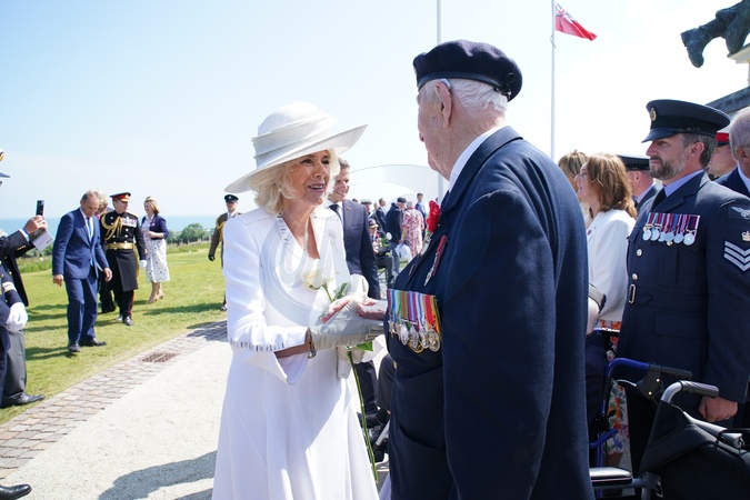 Queen Camilla speaks to D-Day veteran Henry Rice, 98, from Surrey, following the UK national commemorative event for the 80th anniversary of D-Day, held at the British Normandy Memorial in Ver-sur-Mer, Normandy, France. Picture date: Thursday June 6, 2024. It is the first time the memorial, which contains the names of the 22,442 servicemen and women under British command who fell on D-Day and during the Battle of Normandy in the summer of 1944, has been used for major anniversary commemorations, after having been opened in 2021. NO UK USE FOR 48 HOURS, Credit:Avalon.red / Avalon