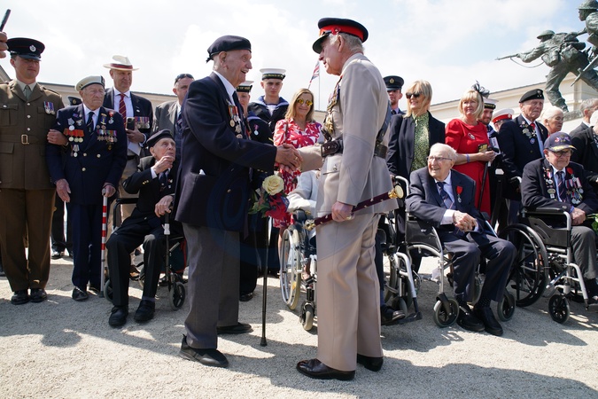 King Charles III meets D-Day veterans following the UK national commemorative event for the 80th anniversary of D-Day, held at the British Normandy Memorial in Ver-sur-Mer, Normandy, France. Picture date: Thursday June 6, 2024. It is the first time the memorial, which contains the names of the 22,442 servicemen and women under British command who fell on D-Day and during the Battle of Normandy in the summer of 1944, has been used for major anniversary commemorations, after having been opened in 2021. NO UK USE FOR 48 HOURS, Credit:Avalon.red / Avalon