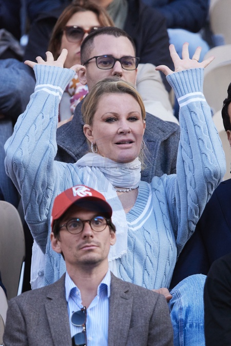 Sandra Lee i jej narzeczony Ben Youcef podczas meczu A.Zverev vs A.de Minaur podczas Otwartych Mistrzostw Francji w tenisie na Roland Garros 2024 w Paryżu