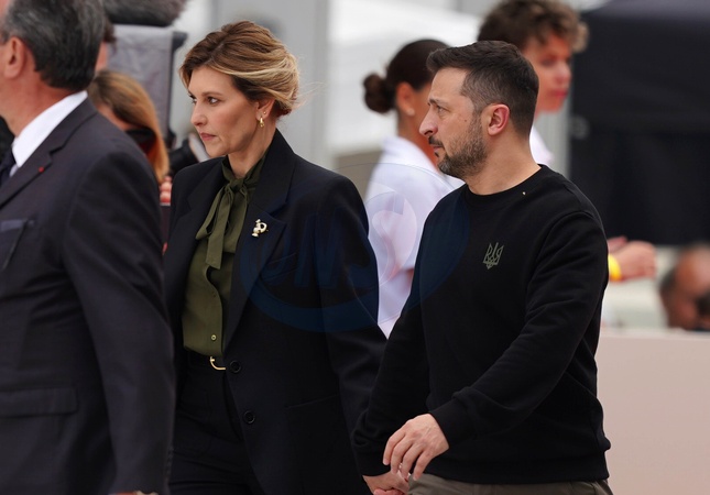 Ukrainian President Volodymyr Zelensky and his wife Olena Zelenska arrives at the official international ceremony to mark the 80th anniversary of D-Day, at Omaha Beach in Saint-Laurent-sur-Mer, Normandy, France, joining over 25 heads of state and veterans from around the world., Credit:Jordan Pettitt / Avalon
