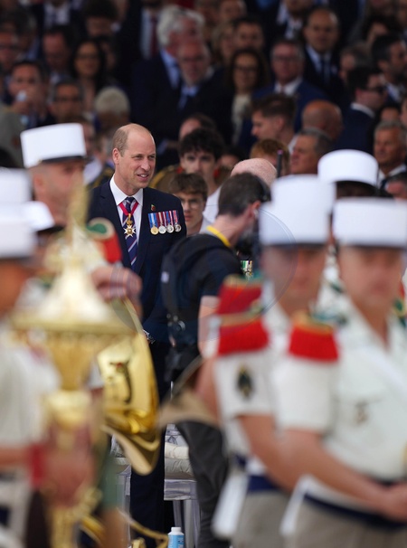 The Prince of Wales attends the official international ceremony to mark the 80th anniversary of D-Day, at Omaha Beach in Saint-Laurent-sur-Mer, Normandy, France, joining over 25 heads of state and veterans from around the world., Credit:Jordan Pettitt / Avalon