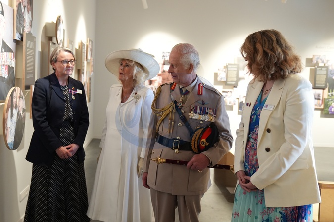 King Charles III and Queen Camilla at the official opening of the Winston Churchill Education and Learning Centre, on the site of the British Normandy Memorial in Ver-sur-Mer, Normandy, France. The new building houses two educational exhibition galleries telling the stories of those who fought on D-Day and in the Battle of Normandy, curated by the Royal British Legion. The Winston Churchill Centre has been funded through a donation of Ł600,000 from the Normandy Memorial Trust's principal sponsor, BAE Systems, alongside the Ministry of Defence, the Department of Calvados and the Seulles Terre et Mer Community of Communes., Credit:Gareth Fuller / Avalon