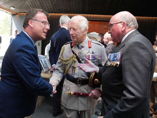 General Lord Dannatt (right), chairman of trustees of the Normandy Memorial Trust, and King Charles III at the official opening of the Winston Churchill Education and Learning Centre, on the site of the British Normandy Memorial in Ver-sur-Mer, Normandy, France. The new building houses two educational exhibition galleries telling the stories of those who fought on D-Day and in the Battle of Normandy, curated by the Royal British Legion. The Winston Churchill Centre has been funded through a donation of Ł600,000 from the Normandy Memorial Trust's principal sponsor, BAE Systems, alongside the Ministry of Defence, the Department of Calvados and the Seulles Terre et Mer Community of Communes., Credit:Gareth Fuller / Avalon