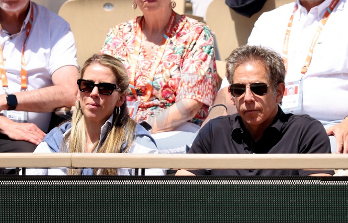 Ben Stiller avec sa femme Christine Taylor - Célébrités dans les tribunes des Internationaux de France de tennis de Roland Garros 2024 à Paris le 7 juin 2024. © Jacovides-Moreau/Bestimage Celebrities in the stands of the 2024 Roland Garros French Open tennis tournament in Paris on June 7, 2024.
