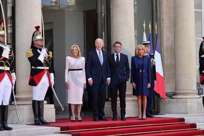 Joe Biden i jego żona Jill po przybyciu do Pałacu Elizejskiego w Paryżu z okazji wizyty państwowej we Francji