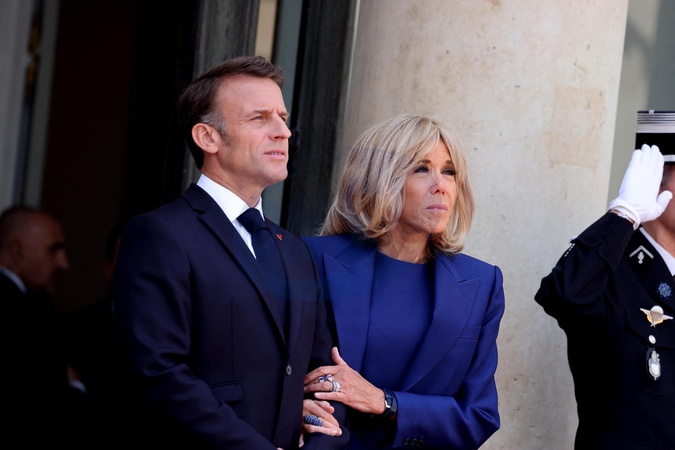 Emmanuel Macron et sa femme Brigitte - Le président des Etats-Unis et sa femme à leur arrivée au palais de l'Elysée à Paris, à l'occasion de leur visite d'état en France. Le 8 juin 2024 © Jacovides-Moreau / Bestimage The President of the United States and his wife arrive at the Elysée Palace in Paris on their state visit to France. June 8, 2024
