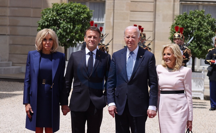 Joe Biden i jego żona Jill po przybyciu do Pałacu Elizejskiego w Paryżu z okazji wizyty państwowej we Francji